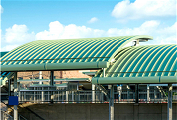 此為眉山展覽館項目,此屋面系統采用的是新型建筑材料金屬...